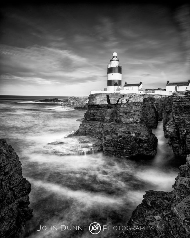 A Wexford Seascape | A black and white photograph of Hook Lighthouse in Wexford Ireland, standing firm above turbulent seas.